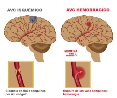 – O Hemorrágico quando um vaso sanguíneo se rompe, causando uma hemorragia no cérebro.